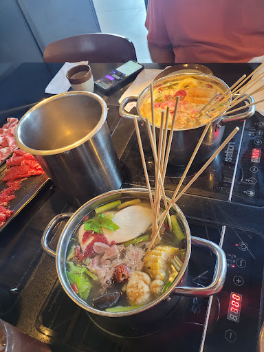 Contrary to other hot pot restaurants where they bring you what you order, you have to go to the fridge to get the skewers that you want aka buffet style. I felt the selection of Veggies and non meats were pretty standard. Nothing memorable. They do have premium lamb and beef that you have to order off the menu that's included in the AYCE that they bring out for you. I actually thought these unmarinated meats were better than the marinated skewer ones! The rest of the meats are marinated on skewers in piles in another fridge. This looked very unappetizing for me as I don't know how long all that meat has been there! I'm pregnant and I have to be careful with what I eat and ensure ingredients are fresh. I didn't find the meat skewers especially tasty either. Needless to say I didn't go back for seconds. Also All the skewers only had a couple pieces on there which is such a waste of skewer sticks! Why not pack more food on there?