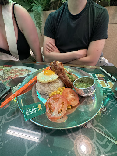 I only tried my dish that I ordered. The portion of minced pork is great. The ratio feels like 6:4ish in terms of pork to rice. Because I wasn't sure about spice level, I asked for just a bit. I recommend just getting the regular amount as it would add more flavour to the pork through the chilis added. On top of rice and pork, there were two pieces of broccoli, a small fried egg and a pile of can corn. The taste of the basil was quite nice with the sweet and saltiness of the pork. The flavor overpowers the taste of the corn and rice when eaten together a bit but that's fine! I'd give this dish a 6.2/10