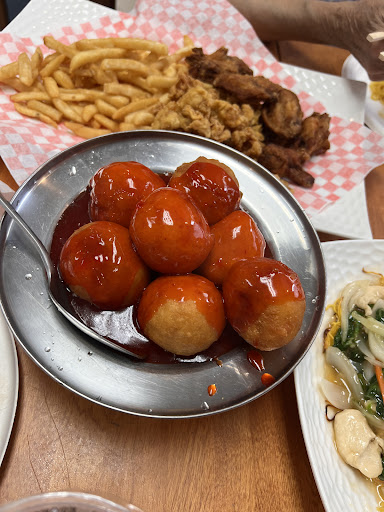 Their chicken balls have generous pieces of real chicken nested inside a perfect (not sweet!) doughnut-like ball, with a sweet'n'sour sauce that's so unprocessed it doesn't glow... I've never seen this before, and it's made me a fan of chicken balls for the first time in my life.