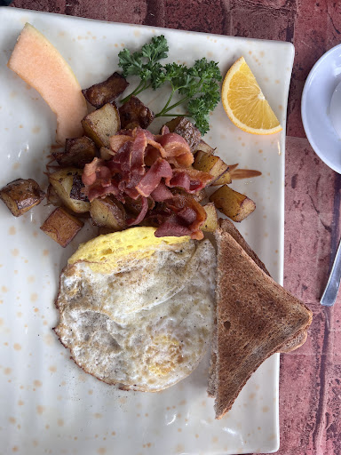 Notable features would be a cafe station, a bar, televisions and all day breakfast. My meal was great, and I'll be back with a friend 💕