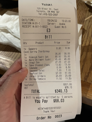 Read moreI've never not left a tip in my life but Yuzuki changed that. The food is great - the fish is high quality and that's what the 1 star is for. The straw that broke the camel back was the chubby server who rolled her eyes at us when we asked for split bill.