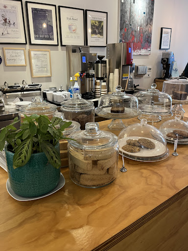 I've tried their latte, cappuccino, and Americano. They were all tasty and smooth. His partner makes some tasty treats and there are always a select few to try. The biscotti is the best in my opinion, but on top of the biscotti there is usually banana bread and 1-2 other things to purchase. I purchased the treat in the picture a while back and it was also divine. They have juice and sandwiches too, but I've never tried those items.