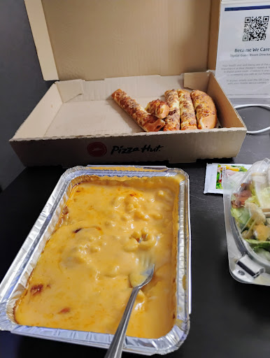 Service is what it is, its a pickup restaurant, they said hello and gave me my food, what you would expect. What you don't expect is the terrible quality of food, I mean it is just pizza hut but I would expect better than what I found when I got to my place to eat it. I ordered mac and cheese that looks quite good in the pictures with cheese baked on top and all, however when I opened it up it was some kind of cheese soup with a few pieces of macaroni in it. The cheese sauce was not near good enough to do it on its own, it needed serious help which is probably what its given when it is made properly. This is definitely one of those "ahhh that'll do" restaurants, get it 50% there and...