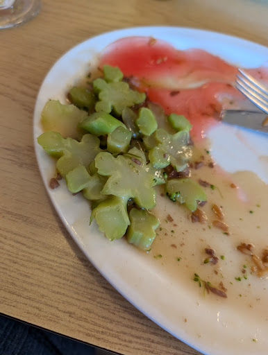"Greeted" at the door kinda and sat right at the worst table possible...so much noise and traffic by us. Our server walked to our table and snapped "need more time?" ...not even a hello, how are you doing, NO greeting. So that was a terrible way to start.