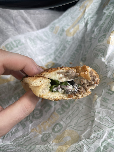 AT THE END OF THE ORDER WE REALIZED THE CRISPY CHICKEN SANDWICH MY GIRLFRIEND GOT WASN’T FULLY COOKED. DO NOT GO TO THIS LOCATION. When I went for a refund they didn’t even look to see if it was raw, just assumed I wanted another, and obviously they couldn’t care less they put out raw chicken. (EDIT: now the next day, I had gotten food poisoning from the pictured steak sub, puking all night. Absolutely despicable and disgusting.) It’s been a while since I’d stopped into subway, and I can say with confidence I won’t go back to this one in particular. Stingy with the veggies ASIDE from lettuce of course, the absolute thinnest subs I’ve gotten, all while at the same time the store was the most staffed I had ever seen with 4 people in at once, and even still they couldn’t seem to get orders out, and they didn’t bother asking if we were dining in or taking out, just took my money and slid the two sandwiches across the counter without a bag. Incredibly unimpressed with the subway store as well...