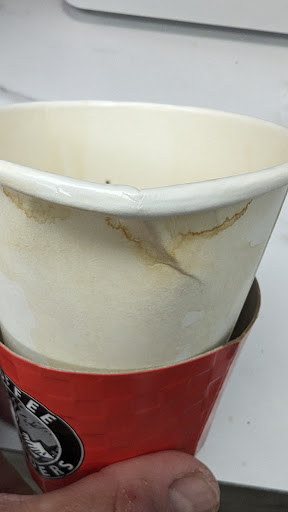 She became even more rude and started death staring at me then death staring at her coworker smirking (blonde hair with glasses). This was so unnecessary and made things quite hostile. Her lack of self awareness and choice to double down and introduce hostility to a customer simply ordering coffee (and patiently waiting 10+ mins) is why I'm writing this review. This barista has a very short fuse and is lacking in self awareness. If I were a business owner with an employee who was acting like that with customers, she'd be escorted out the front door and looking for a new job with no interaction...
