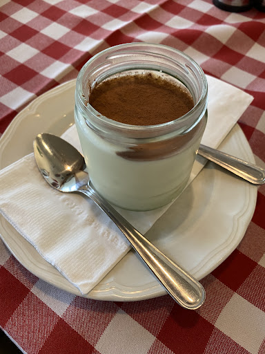 The atmospherics are like a Mediterranean home, but it doesn't really suit their menu (slightly upscale ingredients, smaller portions, and unlike an authentic homemade pasta, frugally seasoned). The furniture while fitting the atmospherics (in stereotype) do cheapen the feel. The table cloths especially (red checkered) draw an association with a roadside diner (that again does not meet their level of product). The small size is cosy, however the layout/airflow, though ignorable, causes a faint waft of restroom odour while you eat (and my nose isn't as good as most of yours).