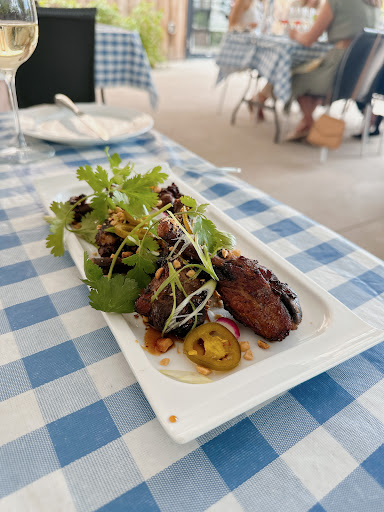 Read moreThis was our first visit. The tasting and dining area inside was nice and bright. We had a lovely lunch in the sunshine on the terrace. Brook was our server and she had excellent suggestions and was very helpful and attentive. Started with the white tasting flight. Would definitely recommend the Auxerrois or Riesling. They had a fire going and the slight scent of wood smoke and pretty flowers on the table really added to the meal. We had the charcuterie board and sticky duck wings. You have to get the wings! Seriously! Lovely attention to detail(sugared chilis) and melding flavors. Great cheese selection on the charcuterie board - Five Brothers is lovely. The bee pollen was a fun touch, I just worry most people won't eat it all and that's such a waste. Desert was incredible. When she said chocolate and grapefruit I thought that doesn't seem remotely delicious but it sounded strange and therefore necessary to try. I was absolutely wrong! Chocolate and grapefruit and mint and olive oil should always be put together. Don't foolishly assume you know that it can't work. The chef clearly knows! All in all it was a truly wonderful food experience and we enjoyed ourselves immensely. The price was exactly right, you are getting excellent food, its worth it. And the coffee was good too and they didn't serve yucky tap water. Good job you Oxley for knowing good water and coffee show you actually really care about the whole meal experience. And the bathrooms were beautiful and immaculate. Also a big deal. Thank you all for making it such a great first experience and lunch. We are...