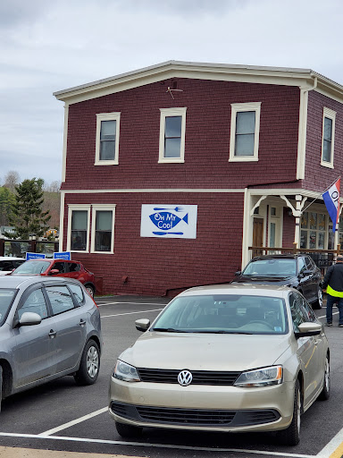 My husband and I had lunch at Oh My Cod today on our first visit to Mahone Bay. The restaurant was very busy and intially the only tables were outside. The streetside deck is lovely but it was a bit of a cool day so we asked if we could move inside. Our server, Tony, came outside a few seconds later and had a couple of seats at the bar for us. As it was a cool day, both my husband and I were in the mood for soup. I am a fish lover, my husband is not, but as they had just run out of their signature soup, it was seafood chowder for the both of us. It was the best seafood chowder I have ever had and the first time I've ever witnessed my husband (again, not a fish lover) eat every bit of seafood in the bowil - and there was lots! Oh My Cod's seafood chowder is loaded with cod, mussels, scallops, and lobster. The salty broth is supremely delicious.Pairing with a tall glass of cider is the perfect combo. I also have to mention the service - it was super too. Tony was busy but very attententive and when things calmed down a bit after the lunch rush, we were able to have a nice conversation about our Nova Scotia travels with him. I heard they are closed on Tuesdays - too bad because we'd be going back...