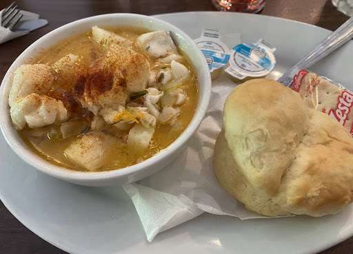 A great place to stop while visiting Middleton or surrounding area! Very large, Open restaurant with friendly staff and many menu items to choose from. Good selection of local beverages (cider, beer, etc.). Their seafood chowder was packed full of fish, multiple scallops, lobster and more. Everything was absolutely delicious. In addition, my friends said their milkshakes were the best they’ve had before. Wait staff was playful and friendly making the experience even better. Photographed: seafood chowder (cup), Chicken flatbread, chicken nachos