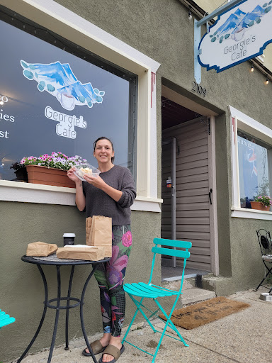 Ā Ā Ā Read moreI'm tempted to keep my love of Georgie's a secret but coming in from a rainy night camp at chain lakes park, we arrived a bit prior to their opening and there were people already waiting at a table. We ordered a full breakfast with eggs, toast,ham and bacon. And carrot cake, blueberry lemon cake, breakfast pie and chai latte. We ate the cakes first...i don't usually go for cake but these were so tasty: the icing was light, creamy and buttery, the breakfast pie was like a muffin but with a croissant style bottom with an omelette like center and shredded potatoes on top. The chai latte was huge an perfect, not too sweet. The breakfast might've taken the cake as the bacon and ham were sogood...not like any I've had, tasty, not too salty or heavy, the meat seemed healthy and clean....we had to come back the next day for more. A true gem in the middle of the south. All the staff seemed polite,...