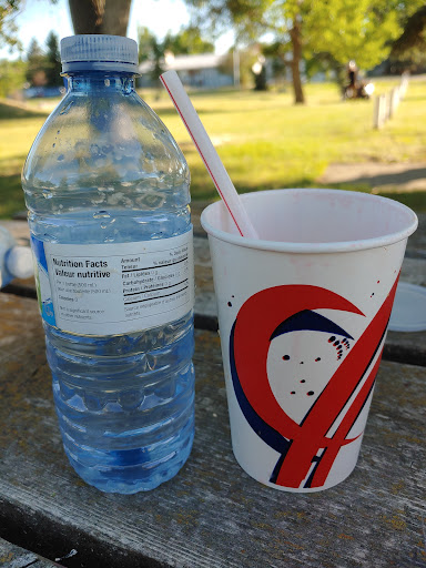 First time here, passing through town, not impressed at all with the food or service. We were looking at the menu and they impatiently asked us 3 times when we were going to order. We got a double mom and a dad burger, large tater tots and a milkshake. I asked how big the milkshake was before ordering and instead of showing us the cup, she just told the onces which meant nothing to me. Then they rushed us out the door to wait in the car and said they'd bring everything out because they won't let people dine in when they could. When we got the food the milkshake was about half the size we expected and really runny. She said the strawberry was real fruit but it was clearly a syrup. There was only half a bag of tater tots and we went back in to make sure we got the right size and they said that was the large which to me looked like a small fry size. The burgers looked big but when I bit into mine it was dry and there was a weird blue spot in the hamburger meat that I picked out and the rest of the burger tasted pretty flavorless. We also noticed no tomatoes on the burgers that they were supposed to have so I called them and they said they must have forgot them and to come back for two slices of tomato. But I had to drive back a couple blocks as we already left to go eat in a park. I went back only to get two very small thin slices of tomato. They wouldn't even give us cups of water after spending $20. They wanted to sell us bottles. I would never go back. See photos for the small cup size of the milkshake compared to a water bottle and the burger with the blue spot in it on...