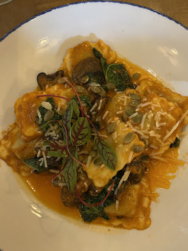 I ordered the mushroom ravioli, their only vegetarian main, and it tasted absolutely delicious. However I was disappointed in the portion size. It was about a third of what I’d expect for a pasta dish.