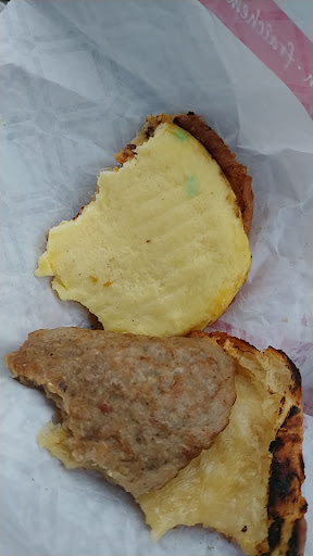I visited this location multiple times while staying with friends in St Andrews. I wouldn't recommend going to this Tim Hortons after 8pm for anything other than hot drinks. The location is open 24 hours but has very few food items available later at night and you may have to wait for staff to notice you're there. The baked goods that were available looked old and stale so I didn't get anything. The lack of availability and waiting is mostly understandable for a small town location at night when business is slow.. but not the green egg...