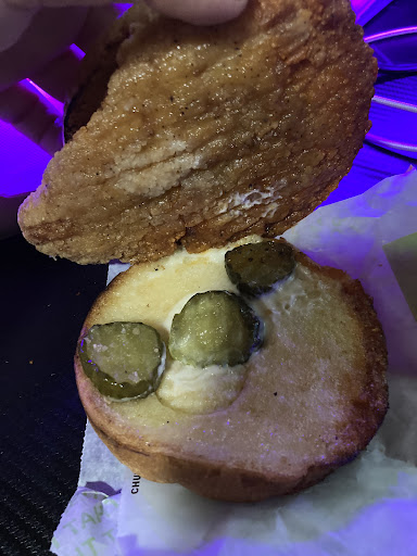Read moreGot to the restaurant at 9:30ish and all the doors were locked. There's a tiny sign on the door that says between 8-10pm they are drive through only, so we got back in the car and went through the drive through. Ordered 4 chicken burgers, 2 lettuce wrap burgers, and an uncle burger combo. Had to pull around to the parking lot to wait 5 mins for the the chicken (yay for fresh), and when it was brought out to us i checked the bags and one of the chicken burgers had a big patch of MOLD on the bun - there is no way they couldn't have seen that!!!! Went and banged on the door to tell them, they 'remade it' but brought a new one out in 1 minute (not the 5 it took the first time)...