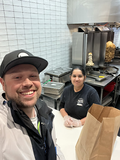 I ordered the Mixed Grill, some stuffed grape vine leaves, and of course baklava for desert. The chicken souvlaki, while tasty was not the best I’ve had, in fact I found it a touch dry and rubbery so I’m not sure how they marinade it. Typically it’s garlic, rosemary, oregano lemon juice, olive oil, wine, and refrigerated for a lengthy amount of time to let those flavours soak in. These were disappointing in texture and flavour, I’d give them 2.5 out of 5. Okay, but I found I enjoyed the chicken shawarma meat and the donair quite a bit more. They were served with a side of donair sauce and a garlic mayo that I hope they weren’t calling tzatziki sauce, as the closest it’s ever been to yoghurt was while stored in the refrigerator, but as a condiment for the chicken shawarma it was lovely. Their hummus was good, and I enjoyed the pickled turnip. We both opted for rice, which was alright.