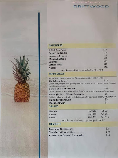 Read moreI’ll be honest, previous reviews had me doubting our choice but I’m glad I gave them a chance because I we had an incredible time at The Driftwood! I ordered the smoked pulled pork sandwich with sweet fries, and it was delicious, it was tender, flavourful, and honestly, I could have just had the sweet fries on their own. They were that good! My husband went for the fish and chips, and he was equally impressed stating that he batter was crispy, and the fish was cooked perfectly.