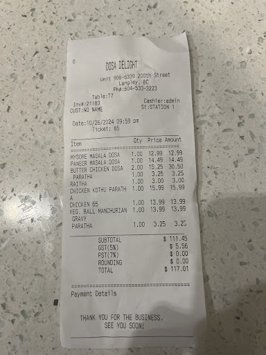 I recently had the pleasure of dining at Dosa Delight in Langley, and it was truly an unforgettable experience. As a passionate fan of Indian cuisine, I've been on the lookout for a restaurant that captures the authentic flavors of India, and Dosa Delight exceeded all my expectations.