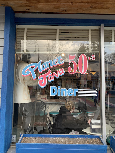Planet Java Fifties Diner atmosphere and memorabilia are excellent! Definitely a blast from the past! However, an update on the restaurant is much needed. I did not use bathrooms. As for service, you order at the front counter. There are a lot of signs, I'm not sure if there is a sign posted saying to order at counter but we didn't notice any. We found a table waited for 10 minutes then went to counter to see what the hold up was. They do bring food to your table. We found the staff very friendly but busy. Lastly, the food is good enough. For the prices you really can not beat it, especially with families. I had the clubhouse and fries. My husband had the Reuben with fries. Both sandwiches had packaged sliced deli meats & sliced cheese. The fries were costco fries and they were fresh & tasty. This restaurant was a suggestion from out of town friends. They liked the look of the restaurant. Of course they did! It really is a wonder to look around. I may look around in some of my junk to see if anything I have should go there and try to donate. Advice to owner - bring in fresh meats instead of deli meats, eg turkeys, hams & roast beefs. Or even if you only get a potato fry cutter and use bc potatoes. And for gosh sakes hire more people!!! We only seen 3 individuals the whole time. And they all deserve a huge thank...
