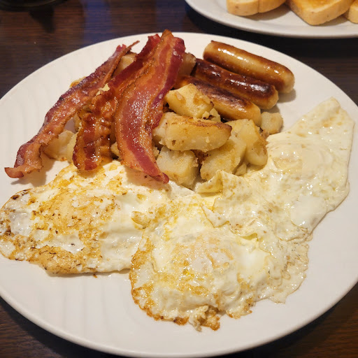 While the portion size was generous, the meal itself was underwhelming. The bacon was overcooked and lacked flavor, and the potatoes—cut into large chunks—were similarly bland. On the plus side, they offered a choice of bread for toast, and I opted for rye, which was enjoyable. The sausages were well-cooked and flavorful.