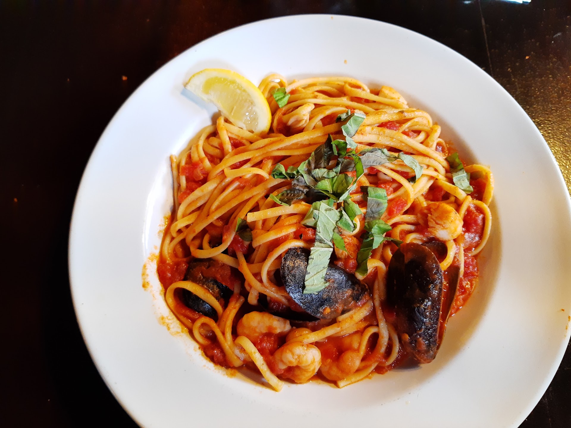 As for the food, generally good (calamari, pot pourri spaghetti, linguine with clams, fettucine alfredo) except for the entree that my mom had which was the roasted garlic grilled chicken. She told me the chicken was overly dry, and the linguine noodles were tough to eat, almost al dente but not quite. I was sad that she didnât have a pleasant time at this restaurant.