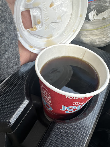 The girl handed us 2 No Ice coffees with an inch thick of caramel sauce in the bottom. We had to go back around and ask them to fix the coffees. The girl spent 2 minutes arguing with US (me and my partner) that they cannot take the coffees back because of âCovidâ policy and they will give the ICE on the side? Also we got Timbits and half of the donuts were squeezed we didnât open it till we got to the park so we didnât complain about it.