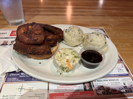 Upon entry to the building the first thing I noticed is that they have wheelchair accessible parking but no actual wheelchair accessibility into the restaurant. I did wait longer than expected to be seated- restaurant had only a couple patrons seated. When I was taken to my table, the waitress was apologetic. I ordered a smoked chicken dinner- the food itself was tasty. I was told that they smoke the chicken in house and there is a meat case that you are able to bring home smoked meat for purchase. Although the exterior looks a little run down, the inside does appear to be clean and inviting. There are VLTs on site however are separated from the...