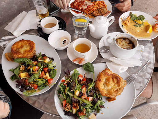 Read moreThis place was a bit over priced for what you get. There was no kids menu so we ordered "waffles" for 7$ which came out as one small waffle for my kids to share. I ordered the beer braised beef sandwich which was great and the meat was amazing and nice bread but it was served with huge fried potato chunks that were flavorless, should have ordered a salad. We ordered a large house salad to start which was just mixed greens with craisins, nuts and apples. No cheese or onion...and just a bottled balsamic dressing on the side. You would think they would have tossed it in a house made dressing. That was for sure a blow and over priced. My mom ordered the lobster Mac n' cheese and it was covered in loose dried bread crumbs which was too much. Should have broiled cheese on top for a nice touch. And it was very fishy tasting. Not the best. Her side was a Caesar salad which was probably the best part of the whole lunch. That was really nice and dressing tasted homemade with fresh garlic and anchovies (possibly?). Our waiter was really cute and super nice and accommodating to my two you g rowdy toddlers. Brought them paper coffee cups with lids for their drinks. There are no high chairs or menus for kids. We sat on the patio which was so nice! But the tables were too small to accommodate food and drinks and utensils and condiments. Overall not bad. Won't go...