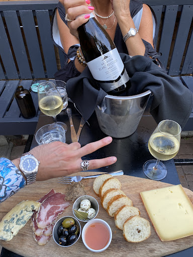 Le Domaine de Lavoie 2020 est un Mousseux blanc exceptionnel qui a accompagné parfaitement tous les plats que nous avons commandés jusqu'au dessert. Le menu du restaurant La Bette est de style tapas, ce qui signifie que les plats sont plus petits et que les clients peuvent commander plusieurs options pour les partager avec leur compagnie. Et c'est exactement ce que nous avons fait! Nous avons commandé tout sur le menu, depuis la Planchette avec deux fromages et carpaccios (G) jusqu'au Gateau zucchinis, qui étaient tous absolument délicieux. Mes coups de cœur incontestables étaient la Salade zucchinis, l'Omble chevalier et le Houmous.