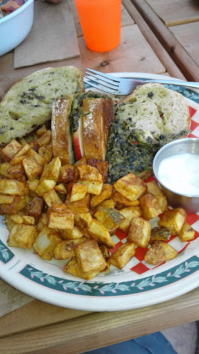 Wow wow wee wow, where to begin with this place? Oh right, preface, professionally trained chef, I enjoy trying restaurants, I saw the menu and was obliged to try it out, a vegan café, sign me up because as an omnivore, vegan/vegetarian cuisine is tedious at home, lots of special ingredients, technique, it's a pain, especially when you don't cook in that style. So I love love love vegan restaurants (it also annoying gatekeeping vegans so bonus). I tried the homemade bagel with vegan lox and vegan cream cheese and it blew me out of the water, so so good. In fact I'll be eating there tomorrow morning because it's how good my first experience was. They give you a dinosaur to keep track of order and I think that's hilarious, love it. Honestly a great location, outstanding food. I will give on weird negative, the bathroom is all gender and I get that hippies/vegan/diet divergent people aren't bad and most likely the least deviant people I could see how women might not like it. I'm a man so it's not an issue but I would have felt an immense awkwardness if there would have been a women already inside or came in while...