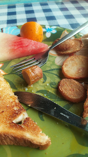 J’ai commandé un déjeuner, à 20$, pour un muffin anglais avec du bacon tellement mou que même Polysleep serait jaloux, genre 9 patates pâles et tristes et un quartier de pomme !? Je sais qu’une pomme par jour éloigne le médecin pour toujours, mais là j’ai rarement eu autant envie d’être dans le coma !