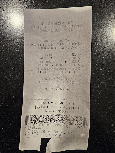 Bref, terminé 67, je retourne chez Royale où qu'ils ont toujours respectés leurs délais et quand j'avais du retard ma pizza était sur le top du four à pizza, bien chaude et quand j'arrive à la maison elle est encore chaude.