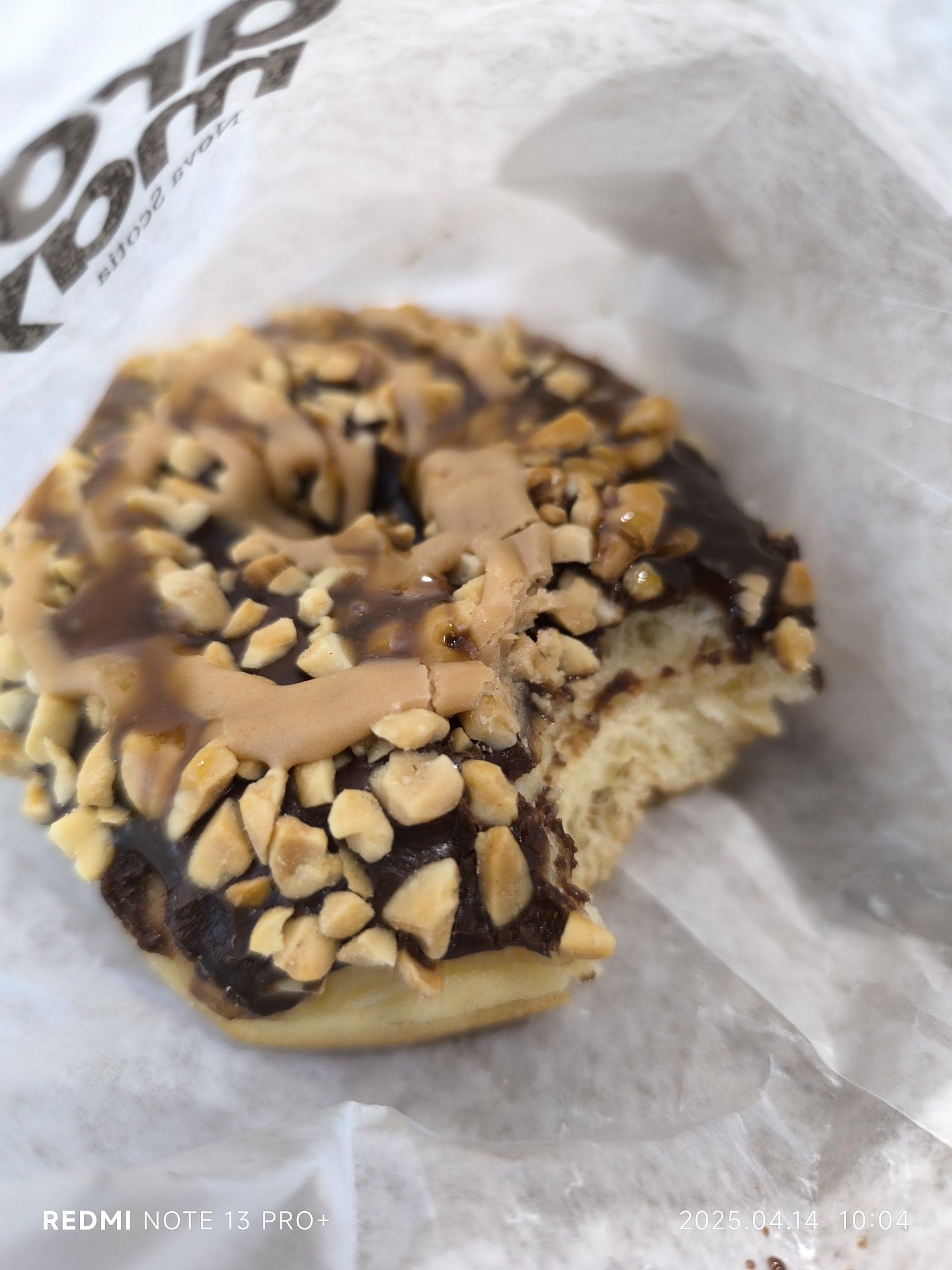 Best donuts in Nova Scotia without a doubt. I’ve been coming here for a few years, and they always amaze me. We had Apple fritter- was everything you could want from it (9/10),Nova cream 10/10 best Boston cream style donut I’ve ever had- the dark chocolate top was perfect glaze the custard absolutely delicious- not too sweet- everything you wished a tim Hortons Boston cream could be in its dreams, sour cream krinkle (7/10) could have been more sour creamy and more ube’y but over all it was a good pastry- maybe less good of a donut- if you like a less sweet less intense option this is for you., Dusted wild blueberry donuts (a delicious blueberry filling) beautiful donut with a refreshing taste. and some iced coffee and tea. Dragon fire mint berry iced tea 5/11- could not taste the fire would like some more jalapeño please. Overall, Well worth the stop! Donut miss out! It’s my favourite place to stop on any road trip and well worth the...