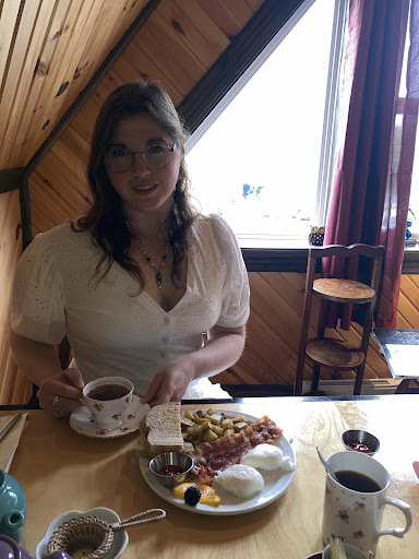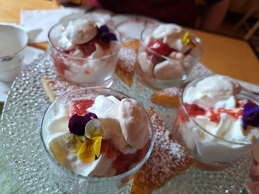Looooove the place and Carol the owner. Last time I went there was for a tea leaf reading with Sue (she is amazing) and I felt suddenly weak for some reason. Well I got cared for right away with cold water and a cold wet cloth then felt better. When we were done with the reading I came back downstairs and there was Carol waiting for me with a snack to go because she was worried my blood sugar was low. All that story is to tell you how great that place is. And I didn't even talk about how the ambiance is warm and welcoming in this old renovated/rejuvenated house. Also the treats are delicious. Not to mention all the crafts that are on display/for sale from local businesses/artisans. 10/10 would recommend... actually I do recommend it time and again to everyone looking for a nice place to relax while having tea and snacks with their friends in a cozy...