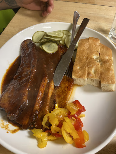 Came here with high expectations because of the great reviews, but honestly it didn’t live up to the hype. Service was pretty slow—we waited quite a while for the ribs. When they finally arrived, they were okay. Smoky flavor was strong. The fries were soft and not crispy at all, which was disappointing. The bear was super average, nothing memorable. The only thing that really stuck was going back to the hotel smelling like BBQ smoke. Wouldn’t rush back.