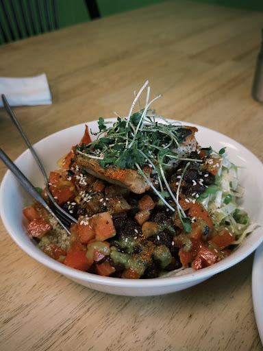 Read moreHouse made focaccia bread for the sandwiches was absolutely delicious. We came at about 12:30 on July 3 and I was a little sad because the main things I would have ordered they were out of (no pork schnitzel, no falafel only tofu, no Fruits of the Sea dish). We ended up instead with the pulled chicken sandwich and the brisket sandwich. I am a wuss with spiciness and the brisket definitely has a kick so I ended up eating the pulled chicken sandwich and it was great despite not being what I thought I wanted! The white sauce was delicious with the pulled chicken. I did get a side of greens and the vinaigrette that they were tossed with was awesome too! Very tasty overall, and speaking with the owner/main chef (I believe) he definitely has pride in what he makes! We sat on the outdoor patio with our dog and that was fine so relatively dog friendly as well as long as you don't block...