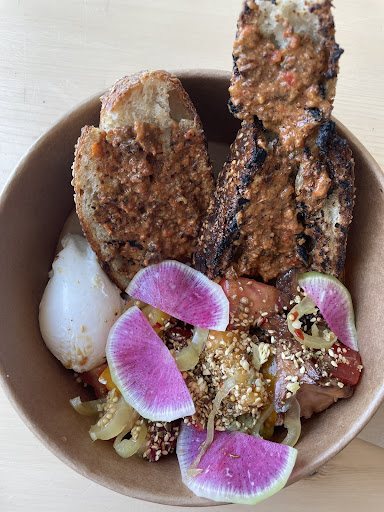 I'm super bummed about this place. Contrary to what Google says, it isn't a restaurant - food options are limited. Further - it is quite overpriced. I paid $40 plus tip for 2 12oz lattes, 2 yogurts, and a cookie. The 2 yogurts were vastly different tasting as well as had very different granola/fruit/yogurt ratios. My cookie was rock hard except for a small bit in the middle which was chewy. I also asked if I could order a side - and was told I couldn't order off menu. I said I wasn't trying to order off menu, just order a side because they are smaller and my toddler didn't need a whole breakfast sandwich. This isn't allowed. The cashier also seemed flippant, and entitled and was not overly pleasant to speak with. The barista making my drink did beautiful latte art, which I complimented, and was very friendly. Her energy was awesome. There was also no where to sit inside - however, I don't fault the establishment for being so busy; just wanted to let future patrons know to not go in the morning (10a) and expect to be able...