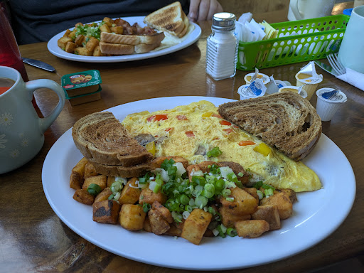 My husband and I with our two teen daughters went for breakfast here while visiting a friend in Kirkland. We had previously gone to CJ's and were hoping it would be similar. While the server was friendly and the food was good the wait was almost a full hour for 6 people for breakfast. When we got our breakfast my husband didn't get the home fries he ordered (he got grilled instead of deep-fried) and had to alert the waitress. When I ordered I was sad to see there was no simple breakfast option (just eggs and toast) but that they had an add on menu and eggs were $1.25 each and toast $2. I asked upon ordering to have 2 eggs and 2 toast from the add on menu. The server asked if I would like meat or homefries and I reiterated I would just like it from the add on menu. Then when we went to pay we were charged $13 for a full breakfast which would include meat, drink, and homefries. When my husband asked about this they just shrugged and said 'Ya sorry'. Also just before leaving we saw an paper ad with multiple cheesecake flavors. My husband tried to order and they actually only had 2 available as opposed to the approx 10 on this page. This was a sad experience from a new restaurant. I will not return but I truly hope that they will do better for...