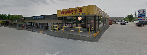 The 3 stars here is because this is the only Wimpy's I've been to, that is NOT Handicap Accessible. I don't mean the inside of the restaurant. I mean that you can't even get to the front door of the restaurant. There's a large step at the west end of the sidewalk at the corner (painted highway yellow so you don't trip over it) and a staircase of 3 steps to the east of the store.