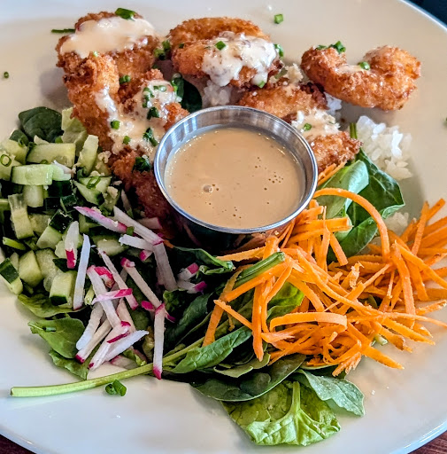 Busy Wednesday night with hockey and basketball playoffs happening. I got a seat at the bar right away which was great. Soon after I received a basket of popcorn and was asked what I would like to drink. The beer I ordered was perfectly chilled and the tofu poke bowl I ate was delicious. I don't know how la Cage makes their tofu, but it's one of my favourites. Special mention to Genevieve who served me (and everyone else I think!) at the bar. She was super friendly and efficient and seemed like she really enjoyed her job too. A true professional. All in all, a...