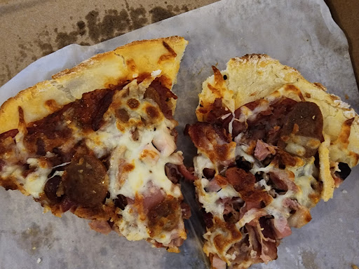 The "crust" was just that... Crusty. Stale with a cardboard texture. The sauce tasted like overcooked ketchup. There were a TON of toppings, but nothing particularly special or tasty with some cheese baked on top.