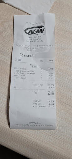 Teen burger sucked! I had to go ask about the bacon, regardless it still wasn't good at all. Fries and rootbeer were ok but coffee tasted awful so I asked they make a fresh pot. The way young boy was nice and apologized as he told older coworkers about it. Supposedly they had made a fresh pot as I sat to wait for my order, the young boy puts the 2 coffee cups on the counter saying here are your freshly made coffee. Yuck 🤢 I couldn't tell any different from the yacky one prior I had took a gulp of so told my son to taste it as he hadn't with first ones. He too my son was like Ewwww it taste awful as I saw his reaction I told him there wasn't any difference from the other. I've been to many A&W in my life and I'm very sure I never got back to that one. Only thing I give 4 stars to is that way young boy that didn't look more than 14/15 if so. He was respectful and courteous. This young boy will have a good life if he keeps going the way he worked that day. The older workers seemed lazy too. Bravo to the young boy for trying his hardest in keeping things...
