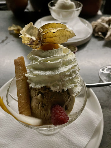 Dessert: en nous desservant, la serveuse nous a proposĂ© un sac pour pouvoir ramener notre bouteille de vin et pouvoir la terminer tranquillement Ă la maison. Mais elle nâest jamais revenu pour demander si nous voulions un cafĂ©, dessert, non elle est revenu avec la facture et le le sac !! Wow...