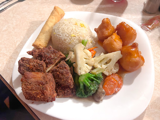 We ate here two nights in a row. The first night we ordered two of the Chinese food themed combination plates for one. Highlights were the stir fry vegetables (fresh, crispy with a really good, light sauce), lemon chicken (nice and crispy) with very good fried rice. We also ordered a couple veggie spring rolls, which were crispy and delicious. The chicken balls and dry ribs were also passably good.