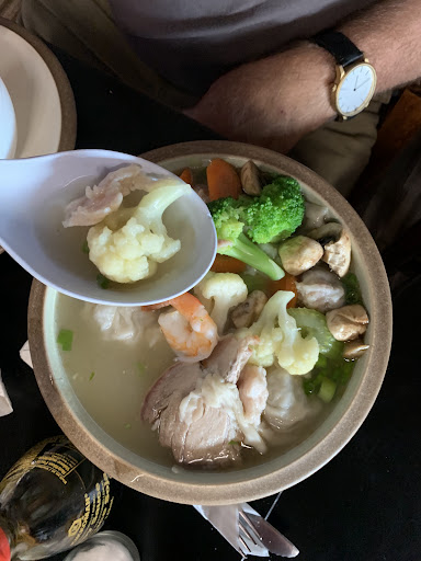 The second night we had two western-style specials: fried chicken with fries; and, home made chicken pot pie with salad (we also ordered a full platter of the stir fry veggies from the night before - they’re just that good!).