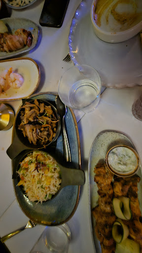 We were group of 15 going here for couple of birthdays. First I asked a tequila drink with mix of server choice since it was our first time there. I noticed all cocktail drinks for our table were served on a plain tall glass which were very underwhelming. For a new place which also wants to be trendy and hype you expect more than that. We had the tasting menu which I think is 90$ or more for the group. Salad was delicious, fresh bread with hummus and tzatziki were good as well but for a Greek oriented restaurant, you expect more tzatziki (very small bowl about 2 table spoon at most, the same size you might get hot sauce in otherrestaurants) than hummus (big bowl here). Than it went down hill from there, first was calamari, it was extremely salty. We had 4 plates of them and everyone said the same thing. We told one of the server and took them and later brought new plates. These ones were with absolutely not a grain of salt, honestly a bit dumbfounded. We didn't say we don't want salt, most likely for the first plates some mistake happened to have that mush salt. Anyway it wasn't a big deal and you could have them with sauce. Pasta was next which was way on the side of dente for any al dente that we have had anywhere. Then came big splash of foods such as shrimp, chicken souvlaki, rice and mix of mushroom with I think onion. Shrimp was very fresh and good, chicken was cooked nicely on outside but 2 pieces on out plate (out of 3 pieces I took) tasted a bit undercooked. I didn't ask anyone else on our table because I didn't want to bring the vibe down, hopefully theirs were good. But here is my beef with most of the food, they were on the sweet side. I love Greet food, and it's one of my all time favorite and beside baklava for dessert can't remember so much sweet food for Greek restaurant. For entertainment, playing live saxophone and guitar is nice but 3-4 time playing the same song during one dinning becomes a bit too much. The whole night DJ was playing but the issue was that so many times in the middle of one song they switch to another or play 10-15 second of one, then jump to another song which reminded me of myself when I try to be a DJ. All together I was really disappointed mostly because I see that they have invested a lot to open this place and I really hope these are my bad luck to hit all the negative points in one sitting. At the end we danced and they took plenty of pictures for restaurant Instagram I suppose. I usually give a second chance to establishments but not sure here, hopefully I will. Staff were very friendly and nice, they were really trying to make it good for people. The place was very clean, decoration is beautiful, mix of modern and reminding of...