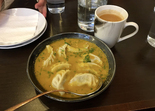 My family and I enjoyed our visit to BC Momo. It was my parents' first time trying Nepalese food and we were taking a while deciding on what to order, but the staff was very patient and didn't make us feel rushed. I ordered the jhol veg momos and a masala chai and also tried some of the chili paneer and garlic naan. The heat levels on the food were lower than I was expecting; my medium jhol momos tasted like mild or medium mild to me with just a touch of heat, and the mild chili paneer had no heat at all even though I would've expected a little bit of a kick even on the "mild" version of this dish. I think the chili paneer would've been better with a touch of heat to round out the sweetness of the sauce, but even so it was pretty tasty. The jhol momos were great and unsurprisingly my favourite thing that I tried! Even though they weren't as spicy as I expected, the broth was still flavourful. Lots of cilantro. The momos themselves were cooked very well - tender but not difficult to break into. I liked the garlic naan; it was a little on the crispy side but not burnt, not too buttery but very garlicky. The masala chai was also very good - just strong enough. I was given the option of sugar or no sugar, I chose no sugar. The portions were just the right size - satisfying but not too big to...