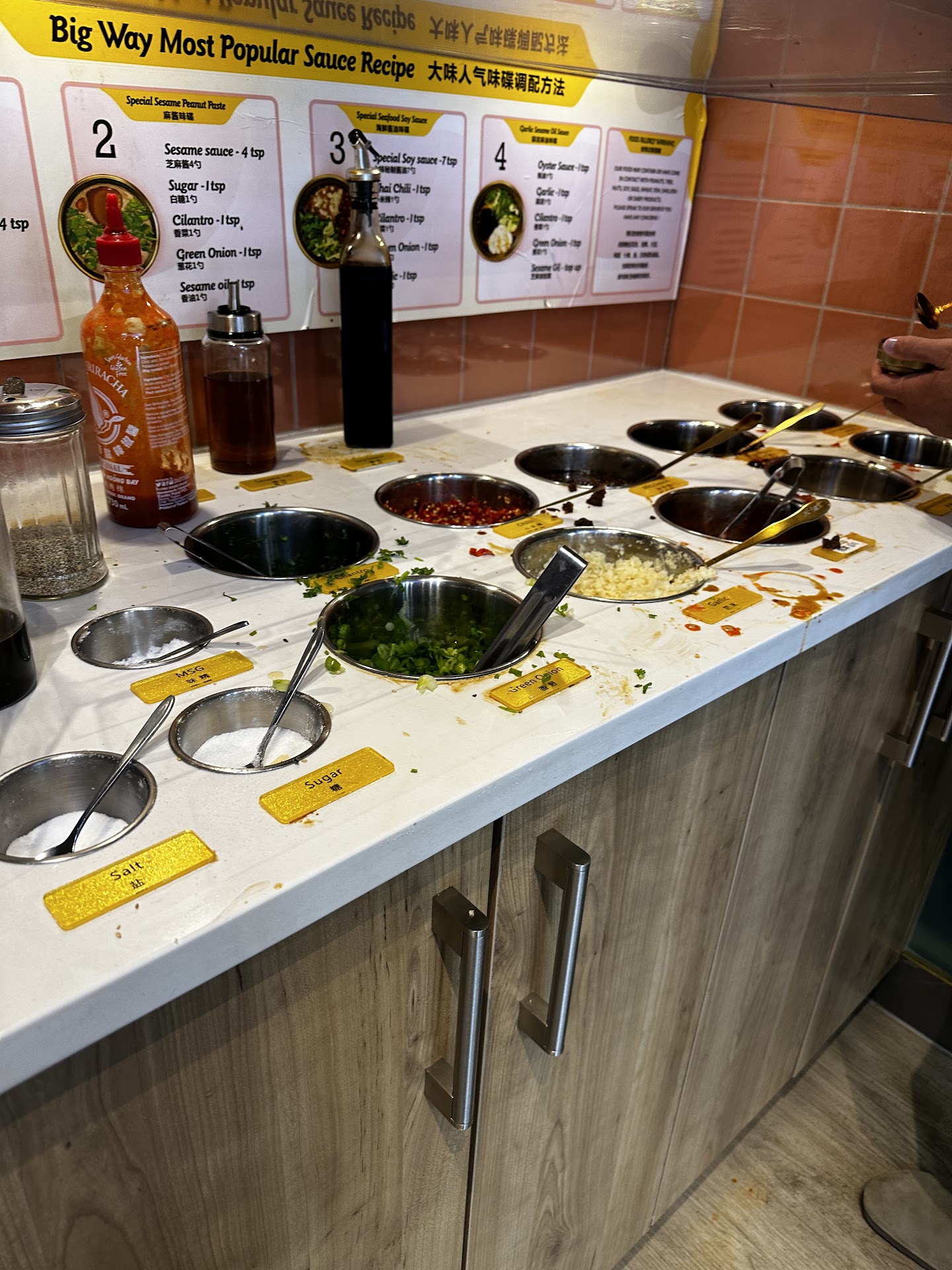 Condiment Station Issues The sugar and MSG were misplaced at the condiment station—again! This isn’t the first time. In the past, they even swapped the sugar and salt, which I accidentally added to my pot, making it inedible. I had to reorder the dish. This time, I noticed the mistake before adding anything to my food, but it’s clear that the staff is extremely careless and unprofessional. Incorrect Dish and Poor Service I ordered the #20 sesame peanut dry mix because I can’t eat spicy food. Even the mildest level of spiciness at Big Way is too much for me, so I always choose the sesame peanut mix. However, when my pot arrived, it looked incredibly spicy. I told the server that I had ordered #20, and she insisted that this was correct. Seriously? How can she not know that sesame peanut dry mix doesn’t contain chili? Please train your staff properly!