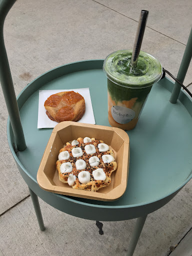 Boketto has been on my list to visit for a while... I previously tried their (delicious) hojicha latte at Japan Market and I finally got around to visiting the shop. I got an everything bagel liege waffle w/ dill cream cheese and lots of goodies from the Fall Fest menu: iced pumpkin matcha latte w/ creme caramel purin, pumpkin miso caramel cookie, and pumpkin mini mochi waffles (plus one original waffle). Everything bagel waffle: This was fun. The presentation with the dollops of cream cheese in each indentation of the waffle is not just nice to look at but also creates a good texture by really highlighting e mouthfeel of the cream cheese. Pumpkin miso caramel cookie: Delicious! The dollops of pumpkin mixture were like pumpkin pie and the miso added some umami depth. Pumpkin matcha latte: I love the pumpkin and matcha combo and their matcha is top notch so no surprise that this was great. The creme caramel purin topping was really good too - adds more flavour than plain egg pudding. Mini mochi waffles: I took these to go and heated them up the next morning, and I was worried the mochi texture wouldn't be good anymore, but it still worked! I'm sure they're even better fresh, but I really enjoyed the gooey mochi texture inside the slightly crispy waffles. Neither the original or the pumpkin was very sweet which was good for me. In general things are a little on the expensive side but I can say their matcha is definitely top of the line and the waffles and cookie were also pretty impressive, so I felt like I got what I paid for. It was worth the trip to the River District...