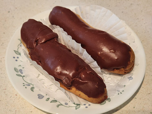 Read moreFirst time at their new location on Alma since Bon Ton's closure on West Broadway. Space was bright; modern decor mixed with nostalgic wall hangings. Smaller than their old location with a pared down selection of baked goods and pastries. Was happy to see their iconic Diplomat Cake still available, albeit their prices have increased greatly. The cake did taste how we remembered - flaky pastry, rum-infused moist sponge cake, smooth buttercream, and a powdered sugar finish. The chocolate éclairs had the familiar French custard, but we were disappointed to open the box to one of the eclairs looking less than desirable (not from transport, but due to how the chocolate was set on the dough - it ended up having less custard as well).